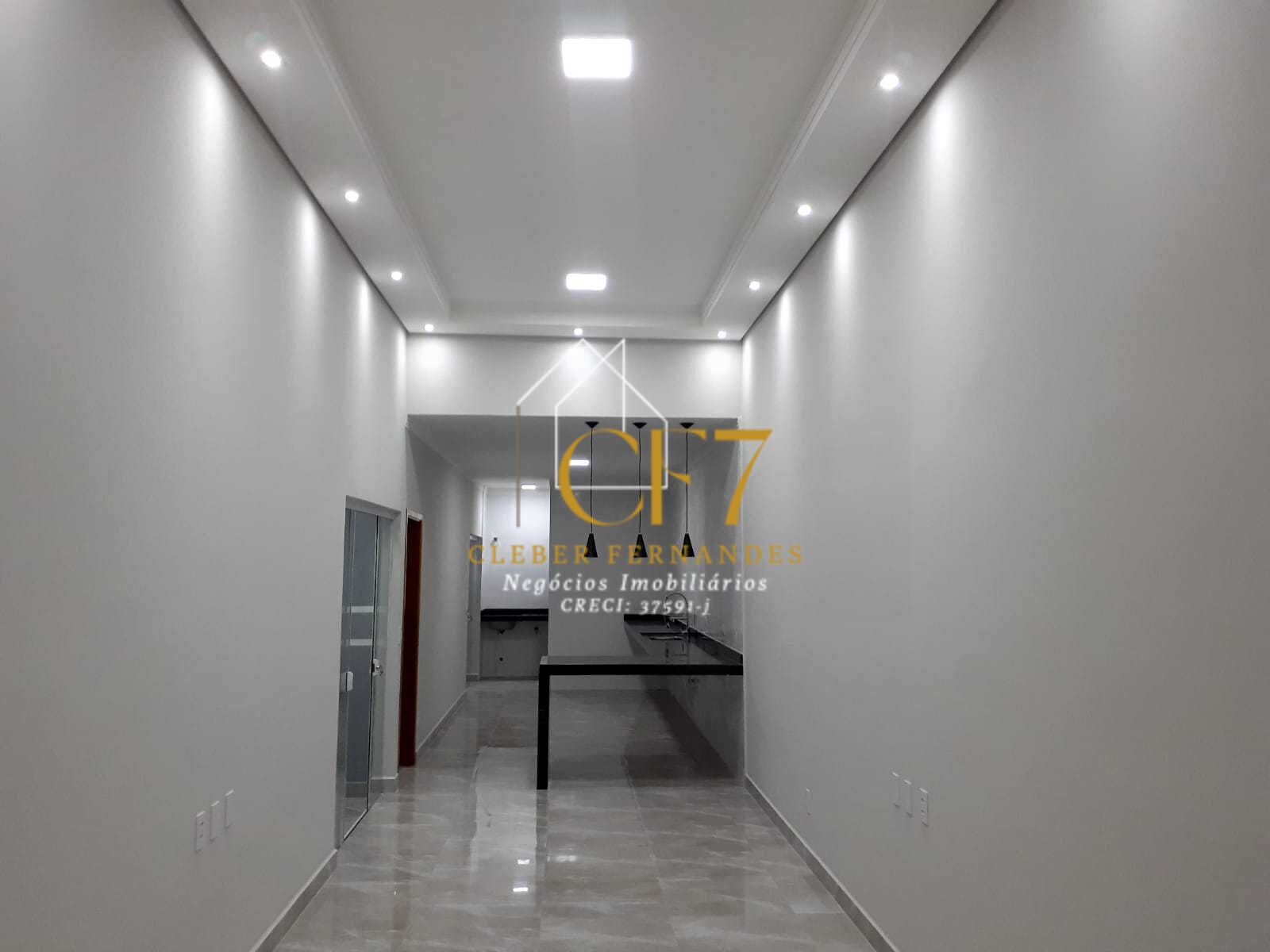 A residência conta com Teto com Sanca em Gesso e Iluminação em Led.